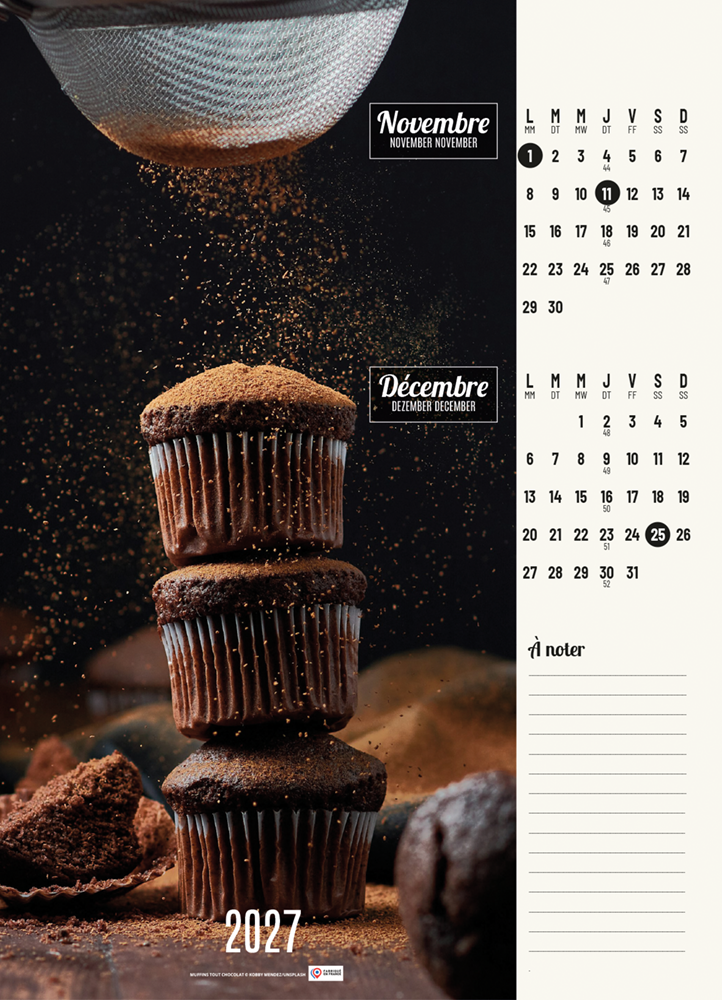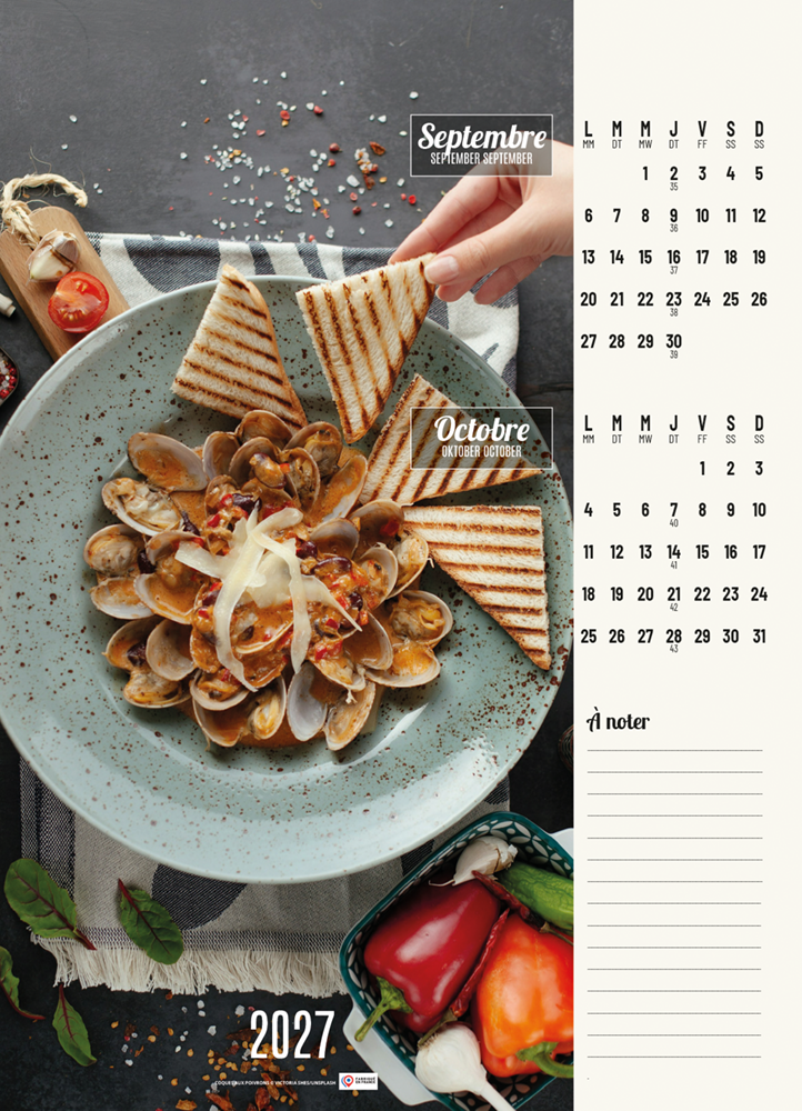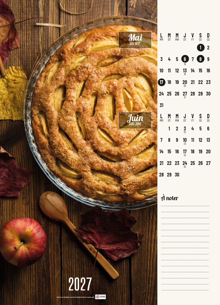 – 8 feuillets : 2 mois par page avec recette incluse.