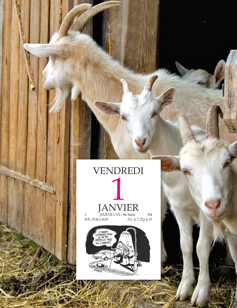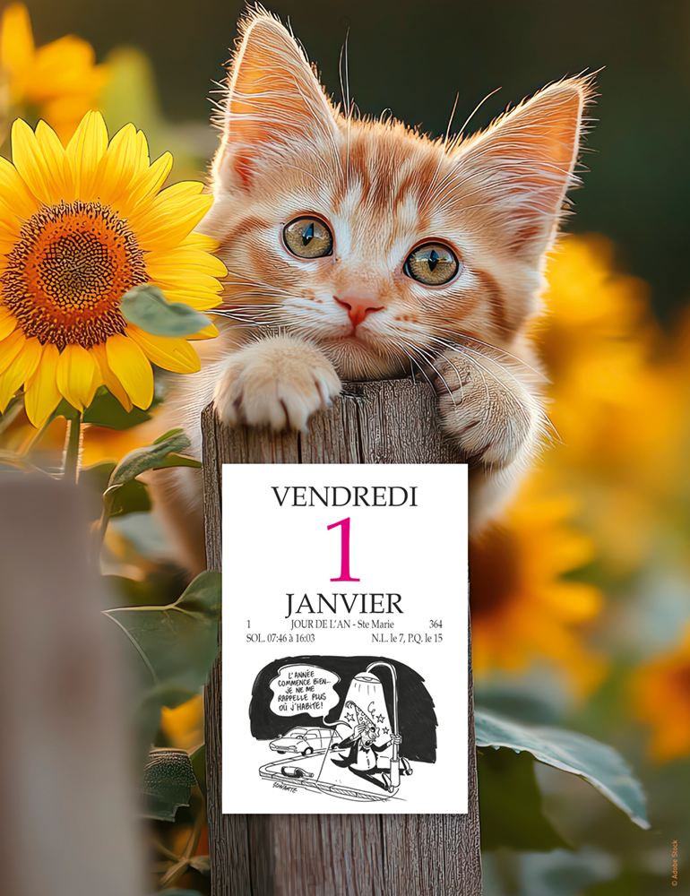 – Bloc éphéméride comique à effeuiller, livré non collé.